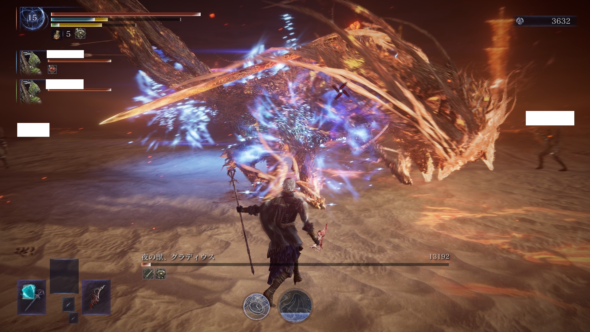 レディは早めに杖を確保しておきたいので、早めに魔術師塔や小砦で杖を入手しておきたい。特に砕け散る結晶やカーリアの速剣を序盤で入手できればファームの速度も早くなるので、野良でも積極的にピンを指して杖を取りに行きたいところ。基本的に砕け散る結晶があれば夜の王戦でも使えますが、グラディウスなど動きの早いボス相手には中距離で使える魔術も確保しておきたいです。