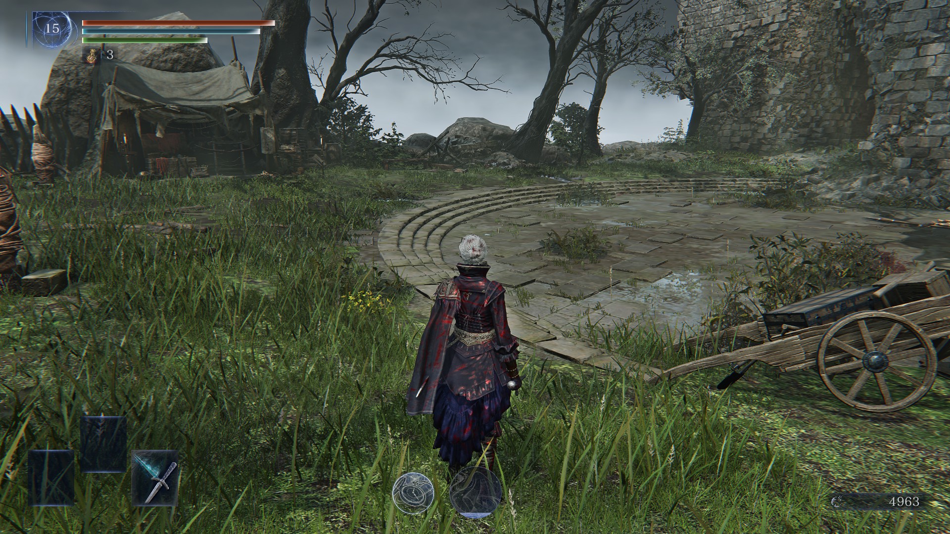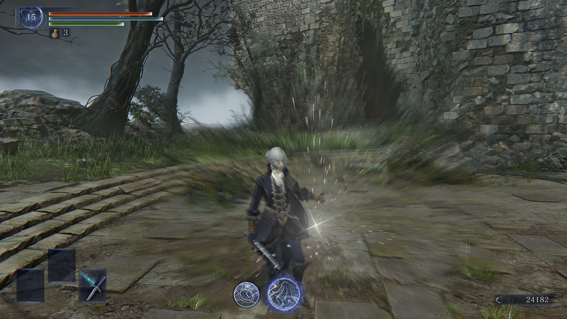ただ序盤は杖が無く、FPも少ないので血の刃や冷気付与、あるいは霜踏みを使って序盤の火力を補強するのもありだと思います。
