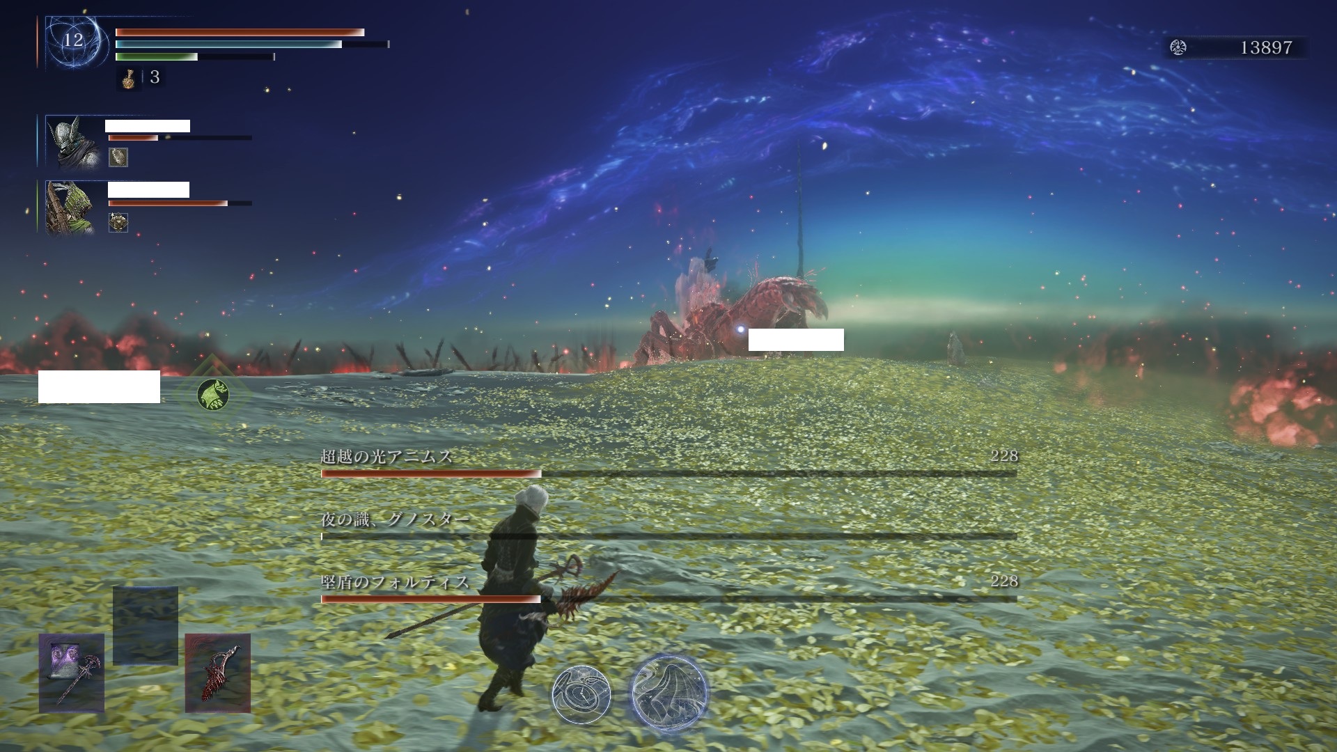 ファームの際に1日目、2日目の夜のボスの前に無理してルーンを稼ぎに行って、事故ってしまう場合があります。祝福に触れなくて聖杯瓶が無くなったり、3ゲージダウン状態になってしまうと、最悪夜の王戦にたどり着けない可能性もでてしまいます。