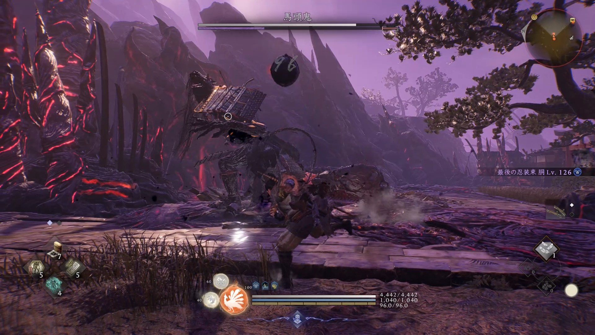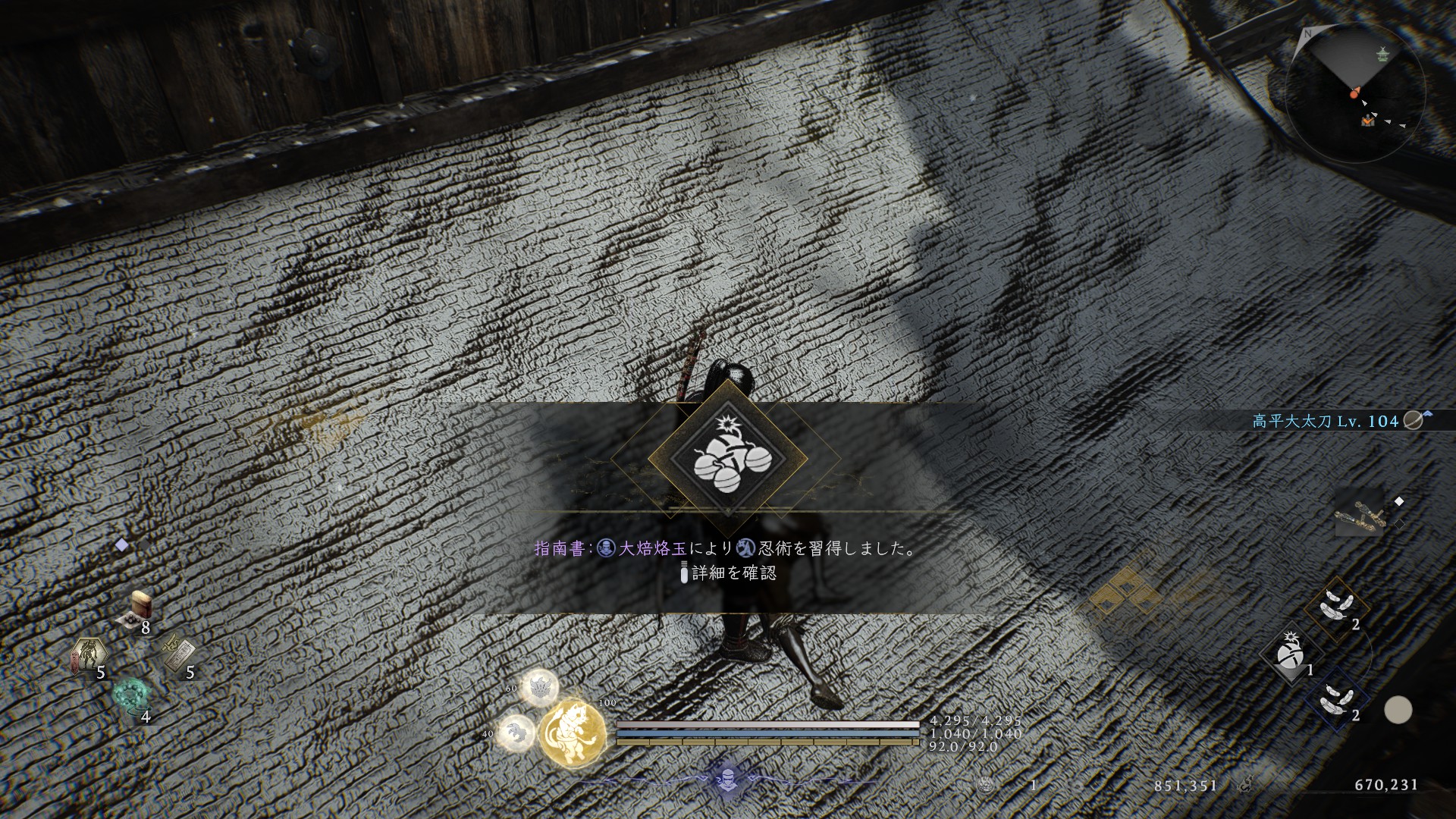 大焙烙玉は投げる前の隙が大きく、投げる前に被弾すると不発に終わってしまうのが難点。しかし影縫いで敵の動きを止めることにより、比較的安全に投げることができます。